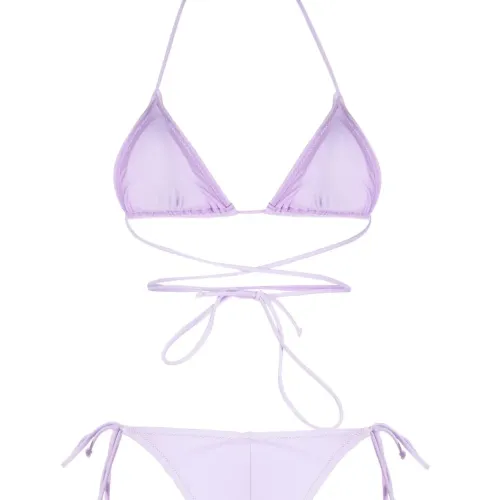 Лиловый, эластичный материал, люрекс, вставки из люрекса, треугольная чашка, завязки вокруг шеи, застежка на завязке сзади, плавки бикини с завязками по бокам и стринги. Пожалуйста, примеряйте купальники и пляжные шорты только поверх собственного белья. Этот товар как минимум на 50% состоит из переработанных или повторно использованных материалов. Узнать больше о том, какие товары получают отметку «Ответственный выбор», можно из материала «Как мы оцениваем экологичность и этичность».