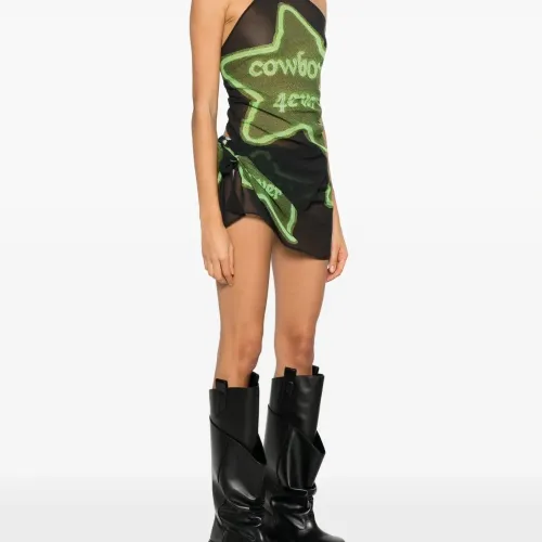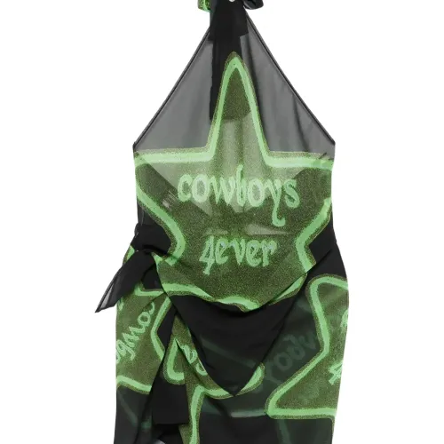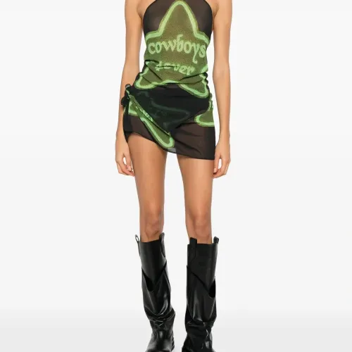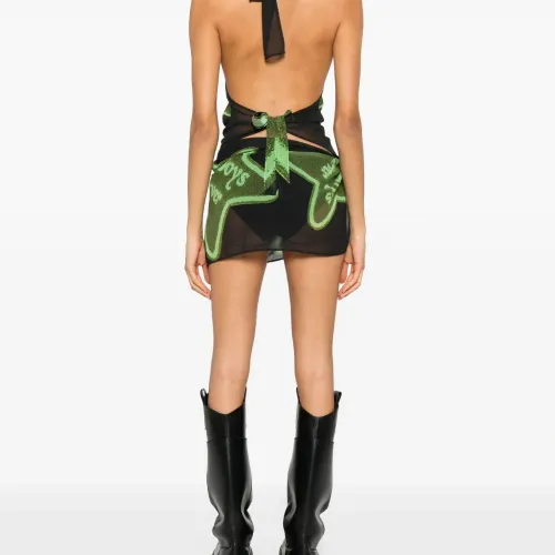чёрный и зелёный топ с графичным принтом, с завязками на шее, без рукавов, с боковой завязкой