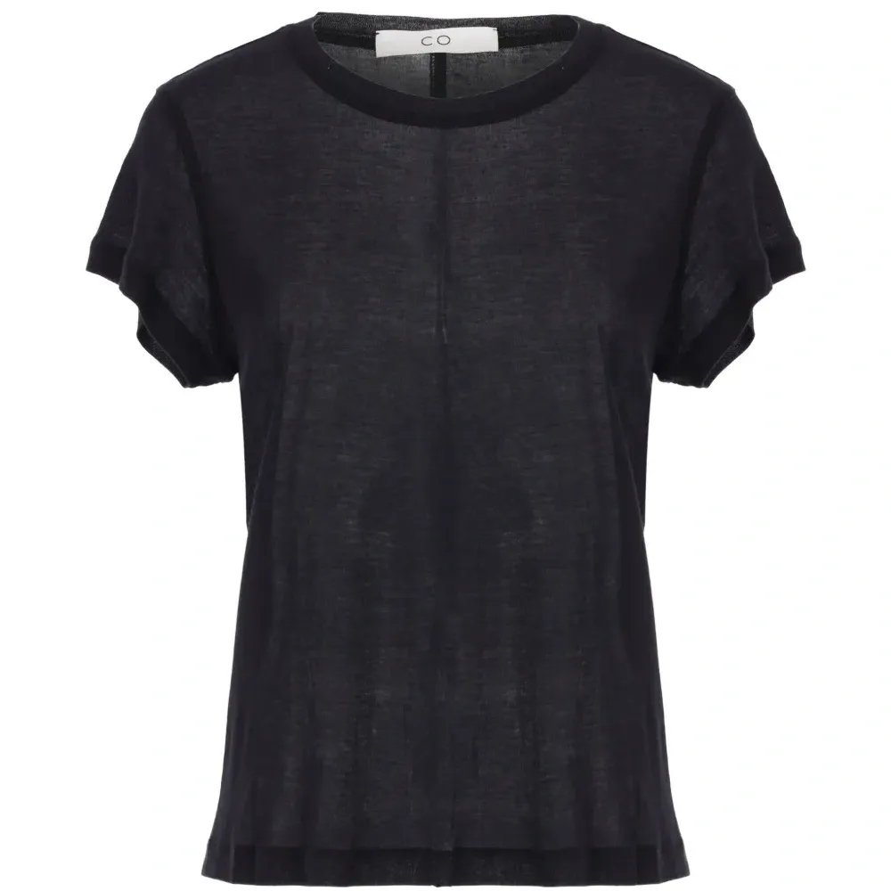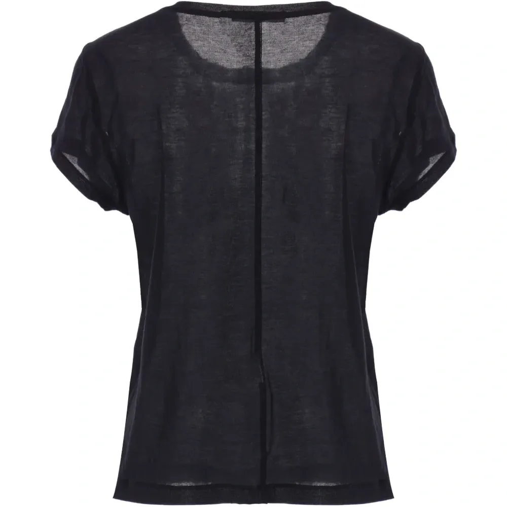 чёрная рубашка с подвернутыми рукавами и швом на спинке