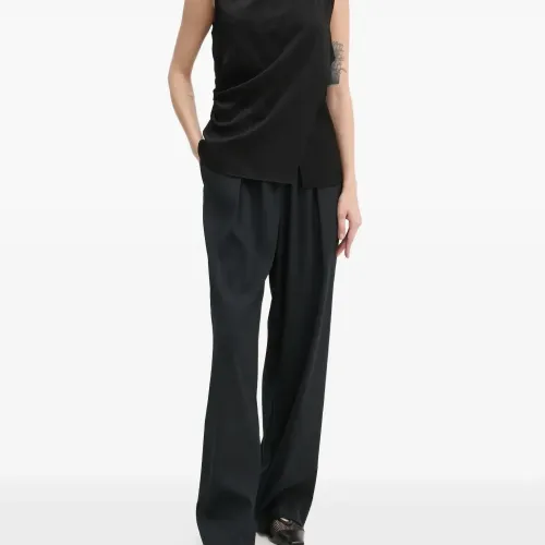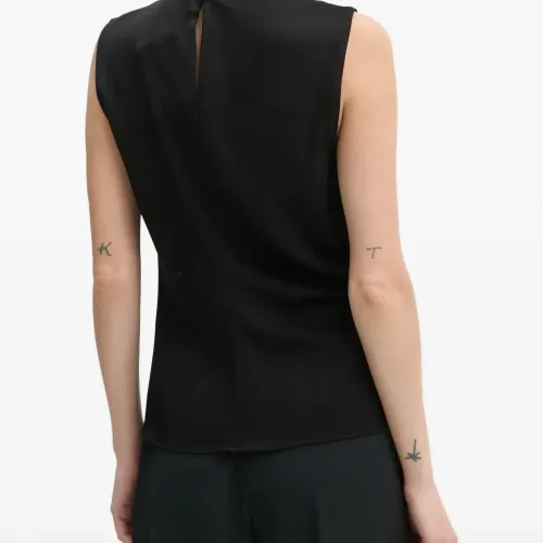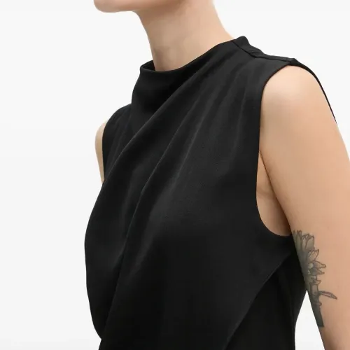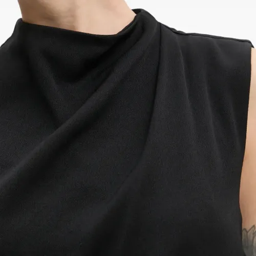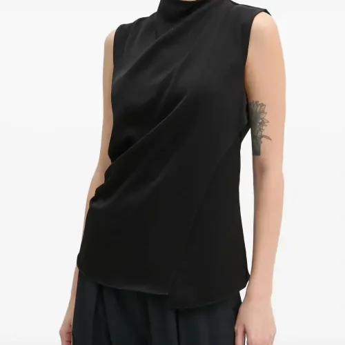 черный топ без рукавов с драпировкой и воротником-стойкой