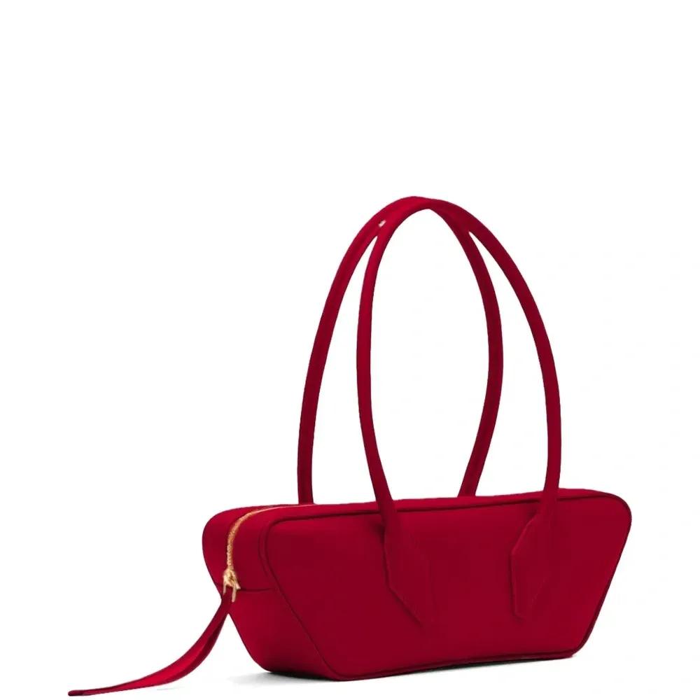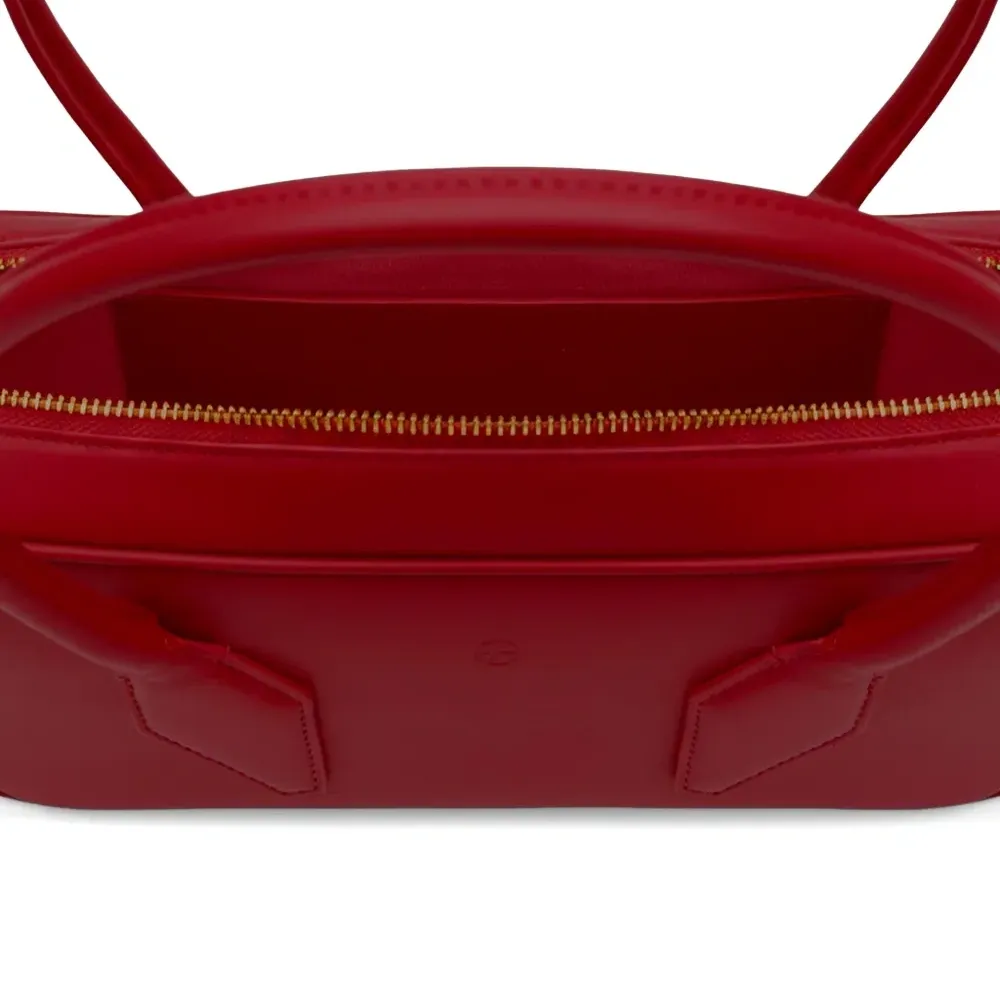 красная телячья кожа, застежка-молния, тиснённый логотип