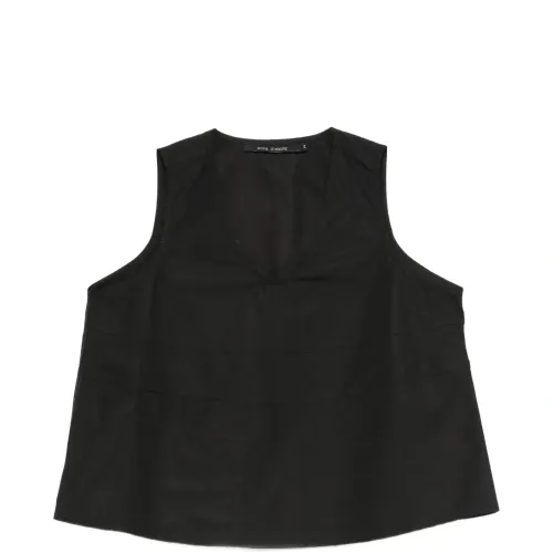 черный топ с V-образным вырезом, без рукавов, с панельной отделкой и прямым подолом