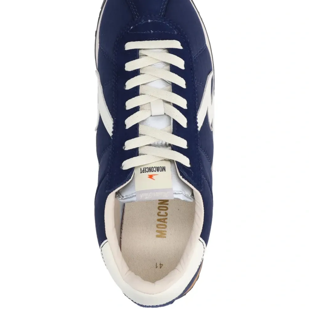 синяя расцветка с контрастными вставками, шнуровка, круглый носок, резиновая подошва, принт с логотипом на боковой стороне