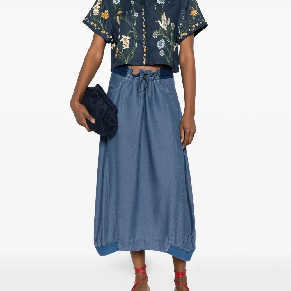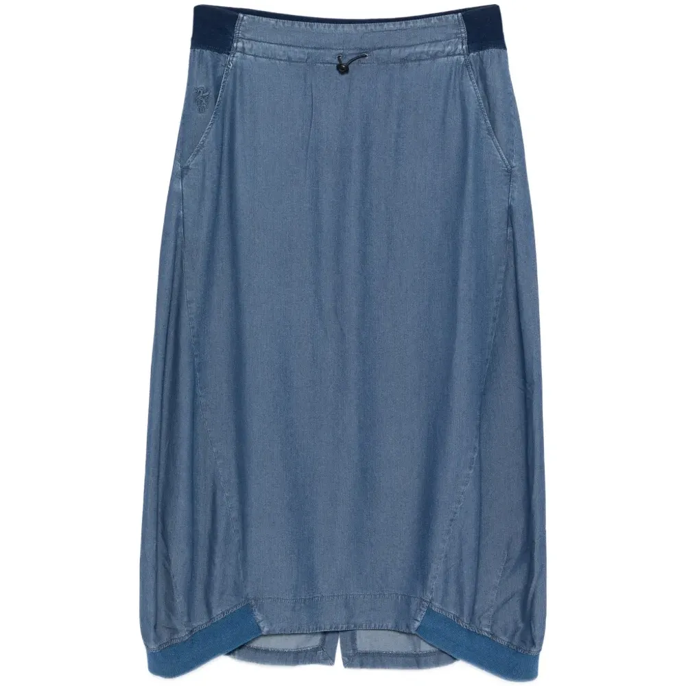 индиго, секциональный дизайн, кулиска, эластичный пояс, боковые карманы, задний разрез