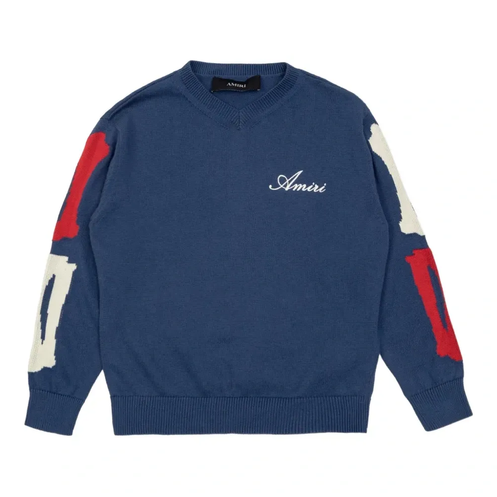 Вязаный свитер с V-образным вырезом и вышивкой