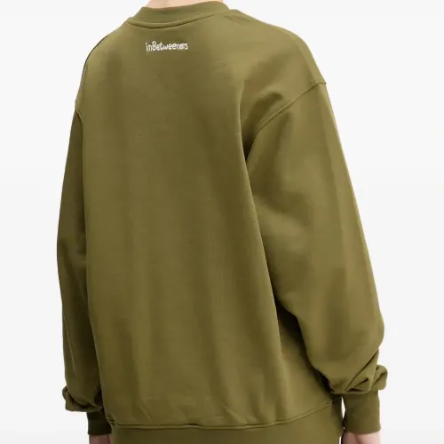 оливково-зеленый свитшот с графическим принтом, круглый вырез, длинные рукава, ребристый нижний край, ребристые манжеты