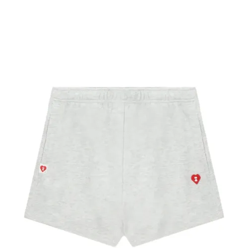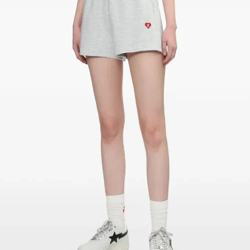 Серое изделие с вышивкой в виде сердца, шнурком на талии и боковыми карманами в швах