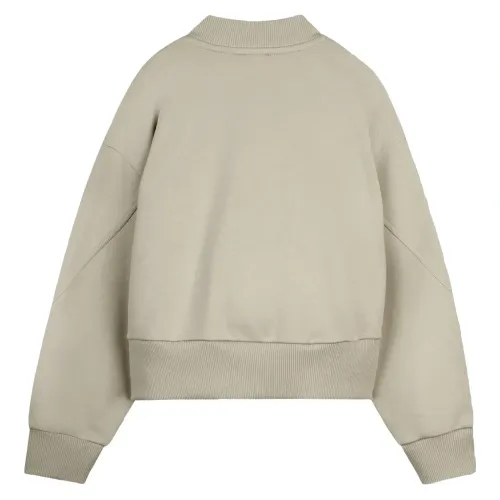 бежевый, застежка-молния спереди, передние карманы, длинные рукава, круглый вырез