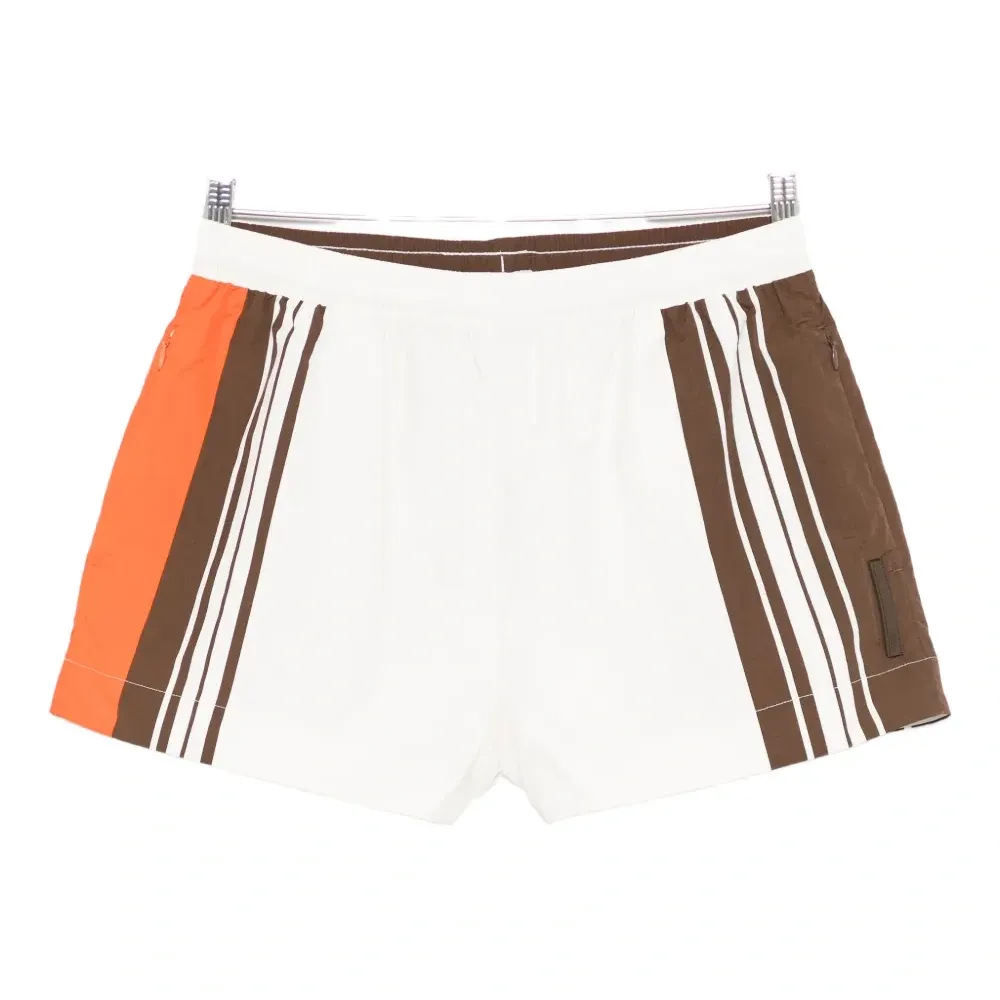 бежевый/многоцветный, полосатый, боковая застёжка-молния, нашивка с логотипом бренда, эластичный пояс, прямой низ