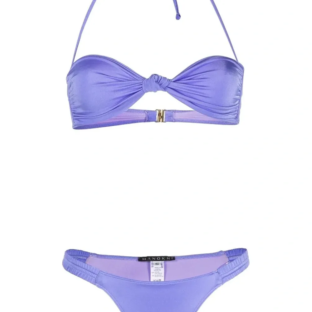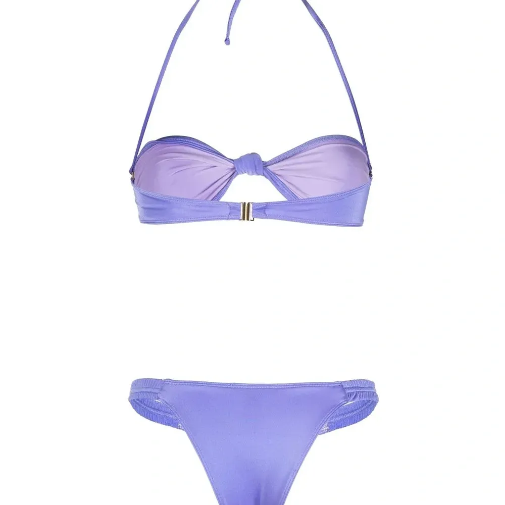 Лиловый, детали с оборками, без рукавов и застежка на зажиме сзади. Пожалуйста, примеряйте купальники и пляжные шорты только поверх собственного белья.