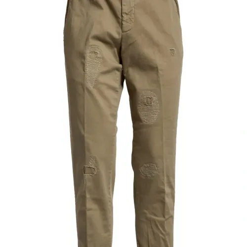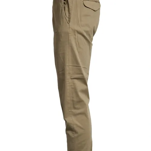 бежевый цвет, эластичный пояс, прорезные карманы спереди, задний карман с клапаном, задний прорезной карман, эффект состаренности