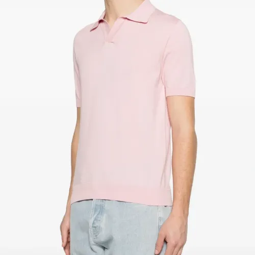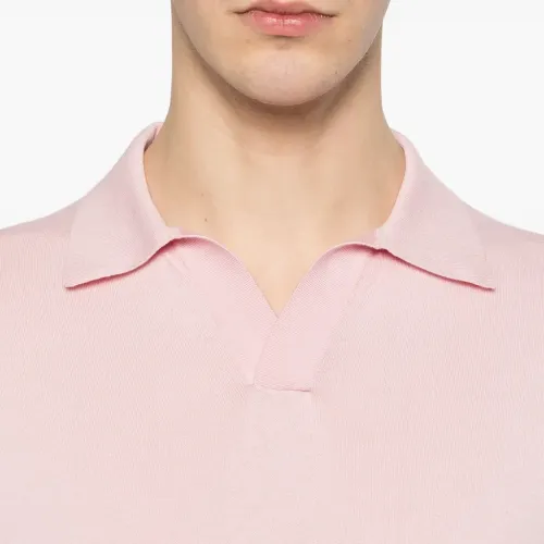 хлопковая футболка-поло пастельно-розового цвета с короткими рукавами