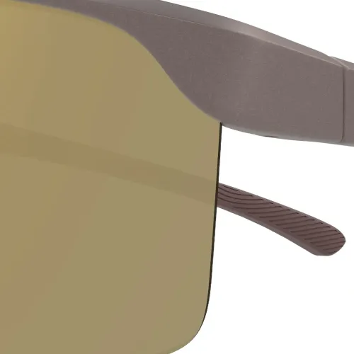серые очки с геометрической оправой, тонированные линзы, носовые упоры, фирменная деталь на дужке, полосатая деталь на внутренней стороне дужки. В комплекте защитный футляр.