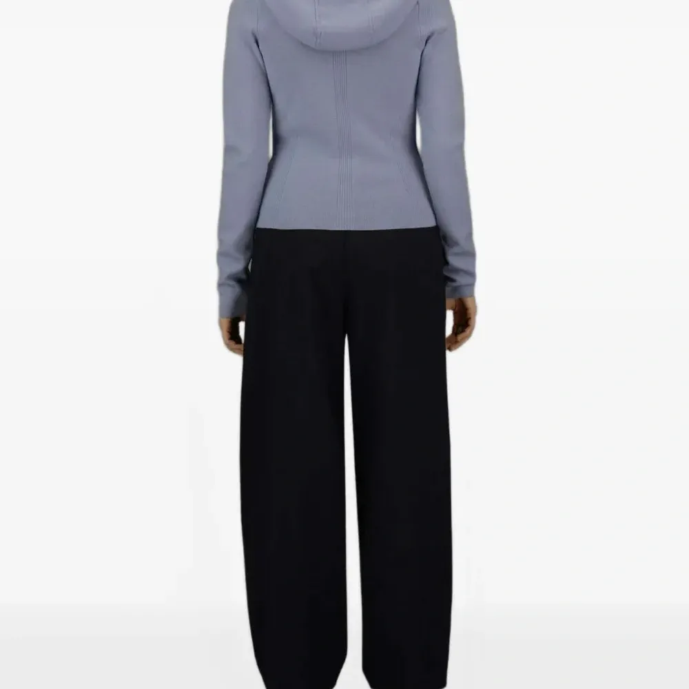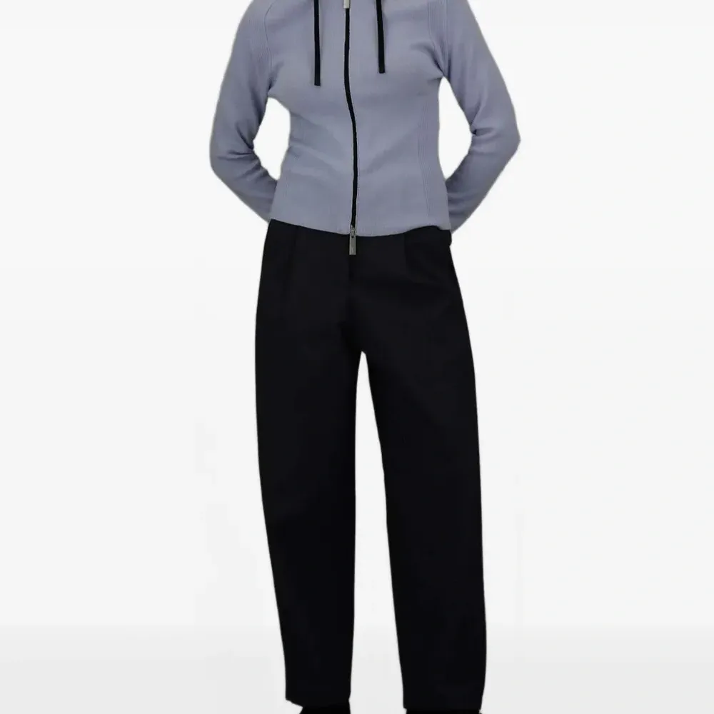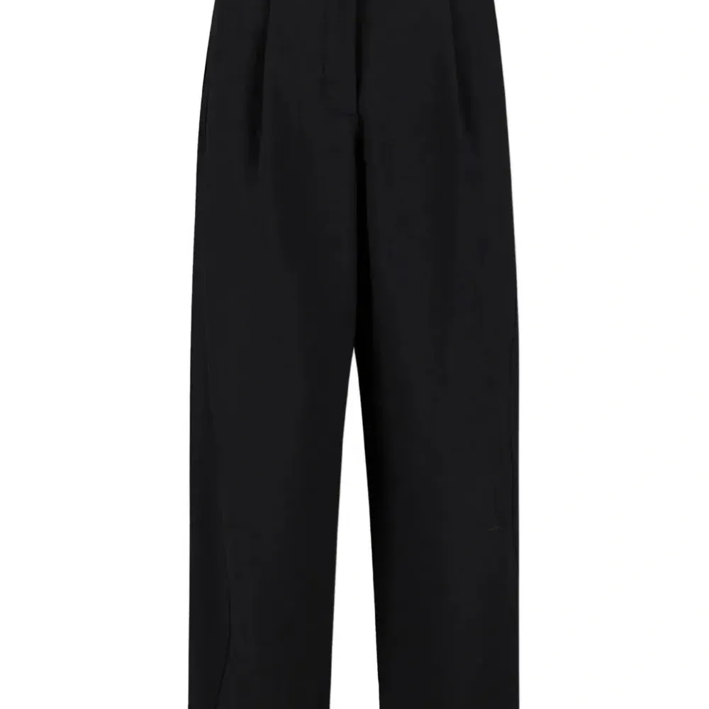 черные брюки со складками спереди, шлёвки для ремня, боковые карманы, задний карман, застежка на молнию