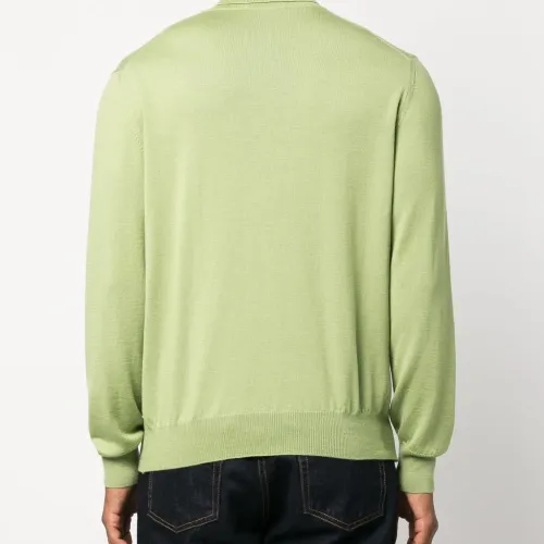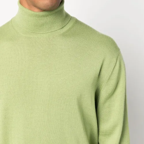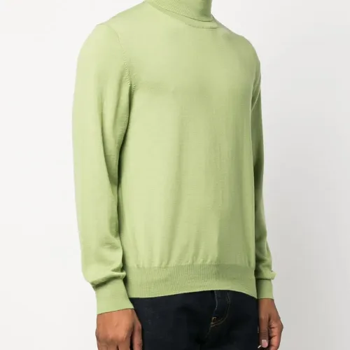Зеленый, необработанная шерсть, отделка в рубчик, высокий воротник, длинные рукава и прямой подол. Это унисекс-модель. Обратите внимание, что для нее используется мужская размерная сетка.