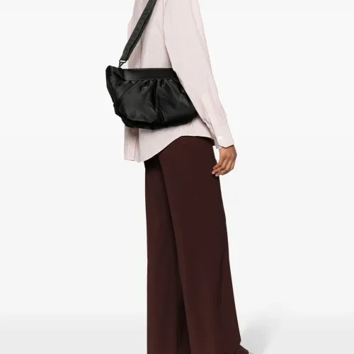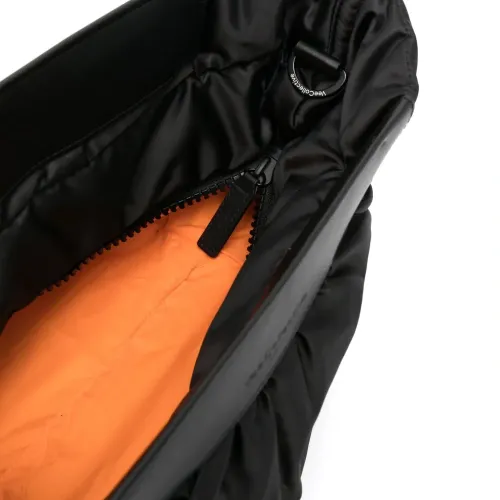 Черный, переработанный полиэстер, переработанный нейлон, окантовка из искусственной кожи, логотип спереди, складки, потайная застежка на молнии и съемный плетеный ремень на плечо. . Узнать больше о том, какие товары получают отметку «Ответственный выбор», можно из материала «Как мы оцениваем экологичность и этичность».