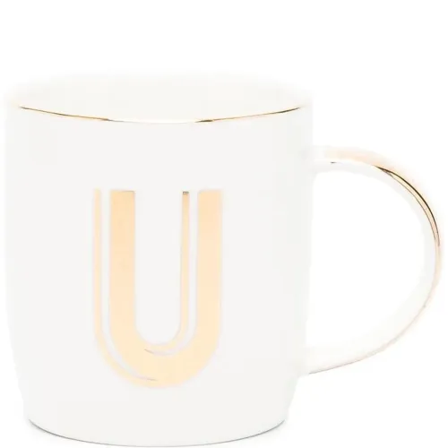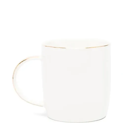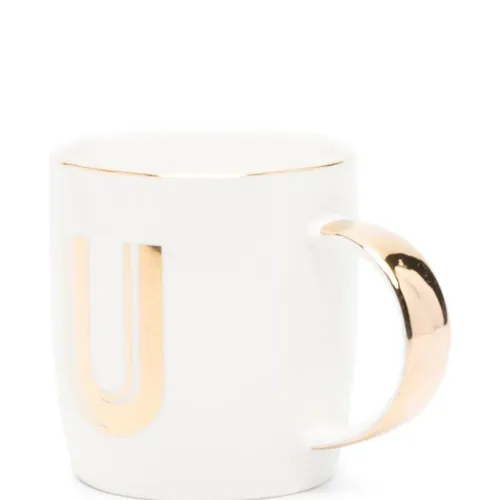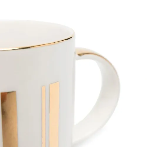 Белый, золотистый, керамика, глазурованное покрытие, текстовый принт, покрытие с эффектом металлик, круглая ручка и подходит для мытья в посудомоечной машине.