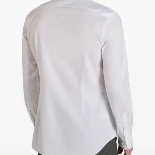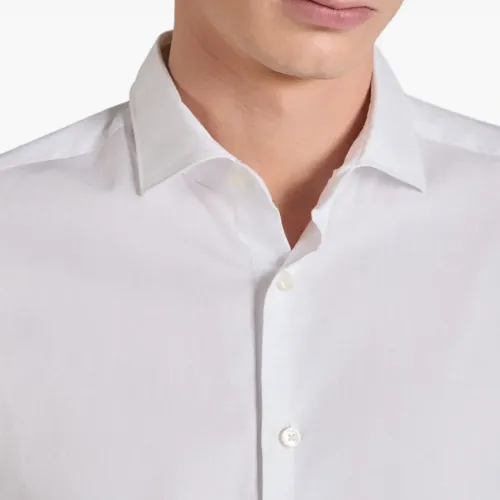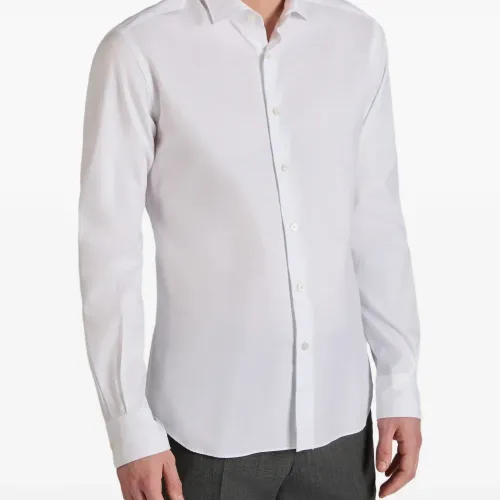 белый хлопковый, застёжка на пуговицах, длинные рукава, отложной воротник