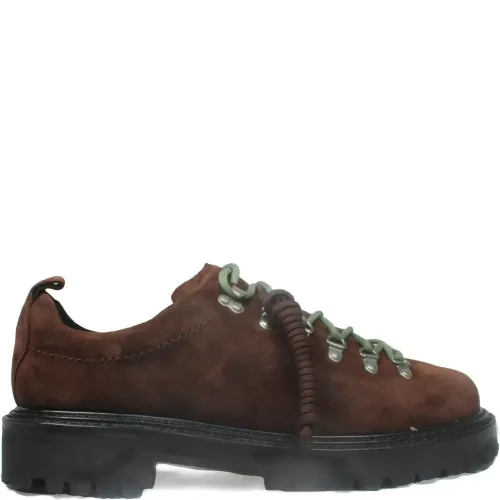 коричневые замшевые ботинки на рифленой подошве, на шнуровке, с язычком для натягивания