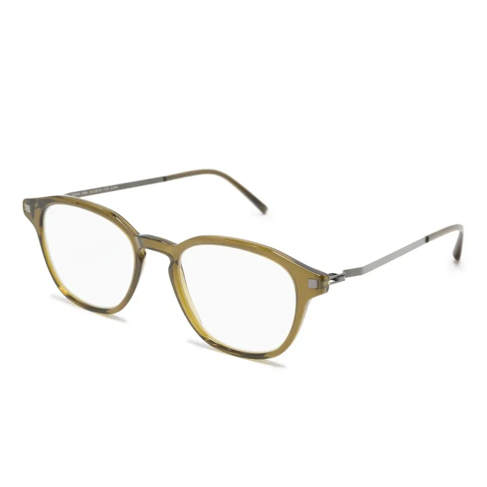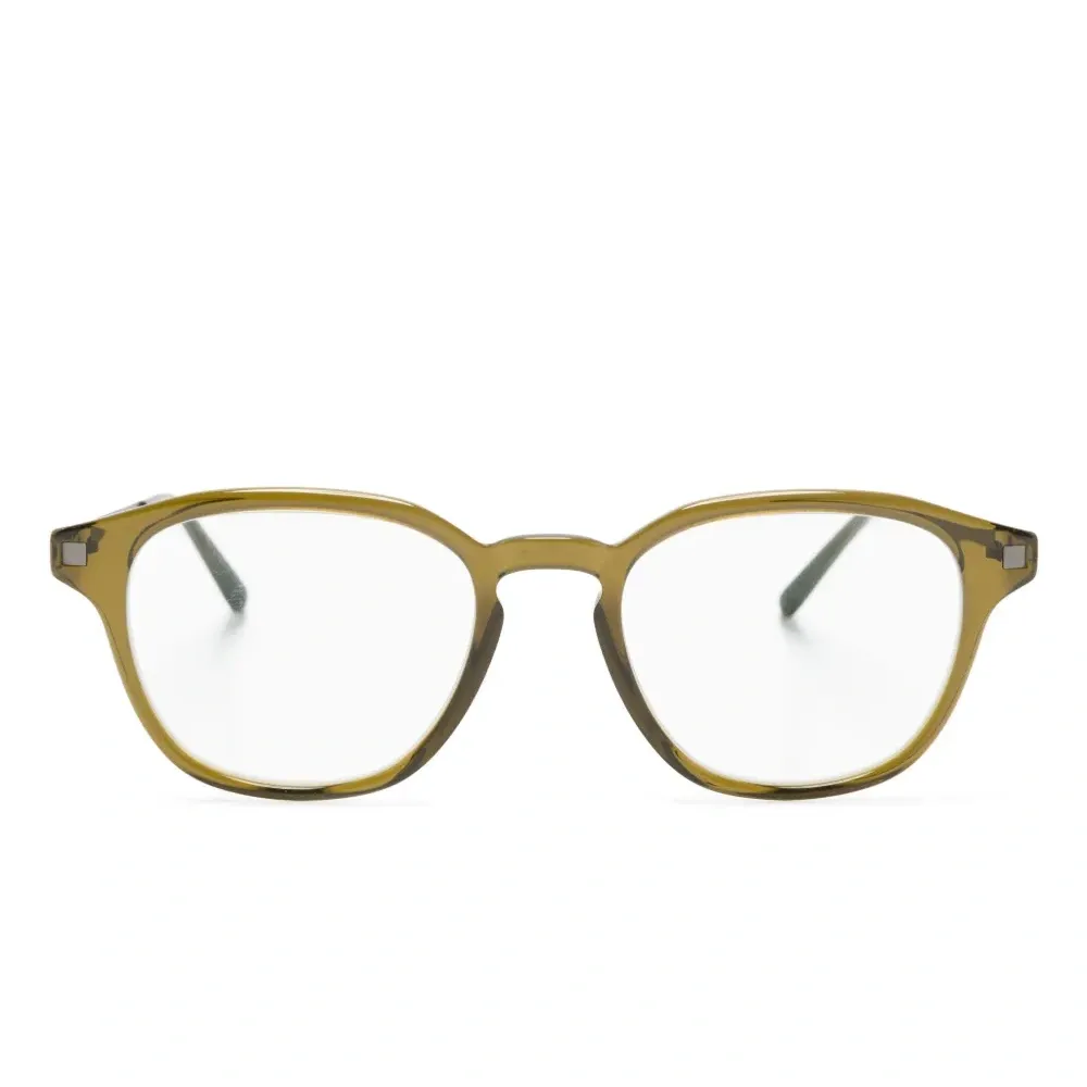 Оливково-зеленый, серый металлик, ацетат, металл, круглая оправа, прозрачные линзы, прямые дужки и дужки с закругленными концами. В комплект входит защитный чехол для очков. Обратите внимание, что на FARFETCH продаются оправы с линзами без диоптрий.