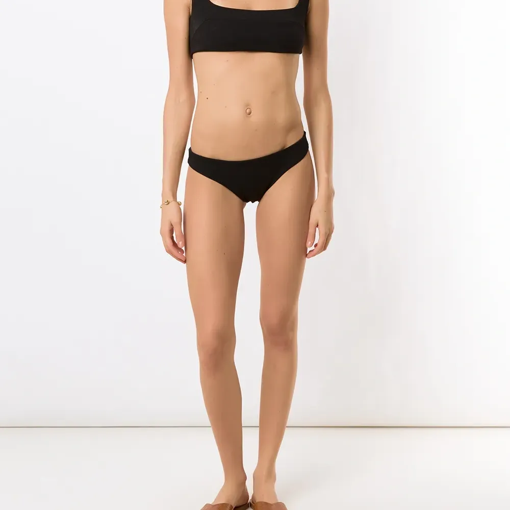 Эластичная модель, низкая посадка и эластичный пояс. Цвет: черный. Пожалуйста, примеряйте купальники и пляжные шорты только поверх собственного белья.