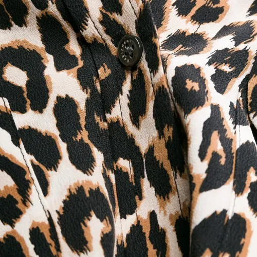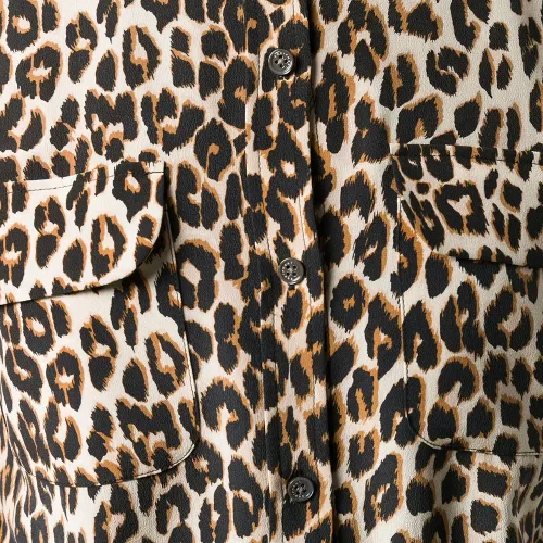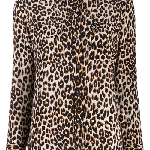 Рубашка с леопардовым принтом от Equipment. Классический воротник, планка на пуговицах спереди и карманы на груди.