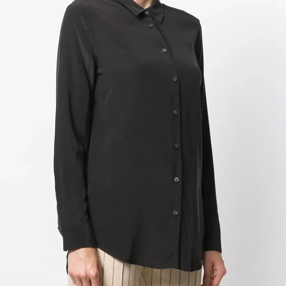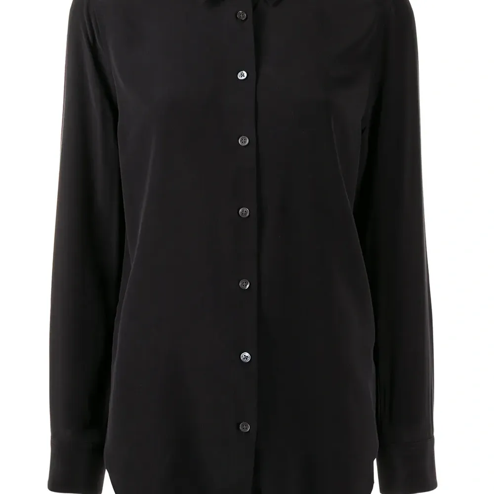 Шелковая рубашка Essential от Equipment. Классический воротник, застежка на пуговицах спереди, свободный крой и закругленный подол. Цвет: черный.
