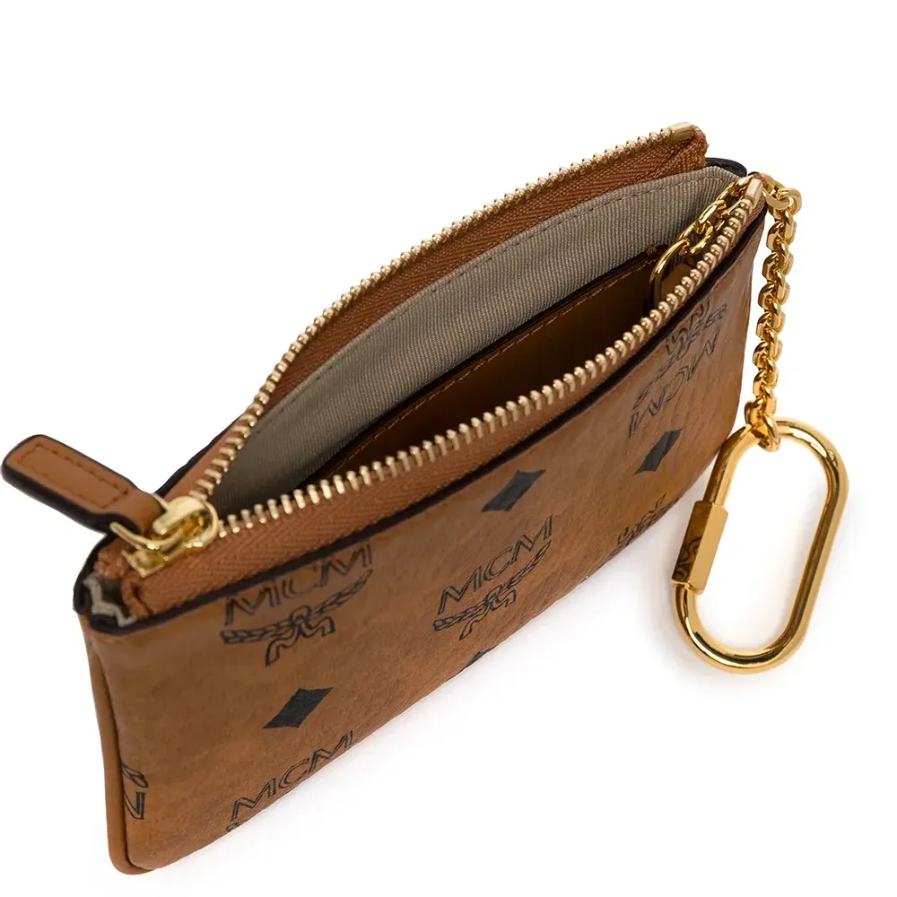 Золотистая фурнитура, монограмма, застежка на молнии сверху, брелок-футляр для ключей и внутренний прорезной карман.