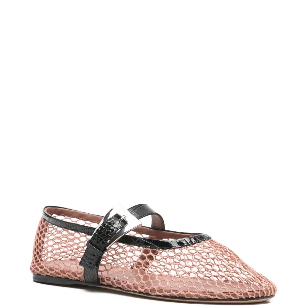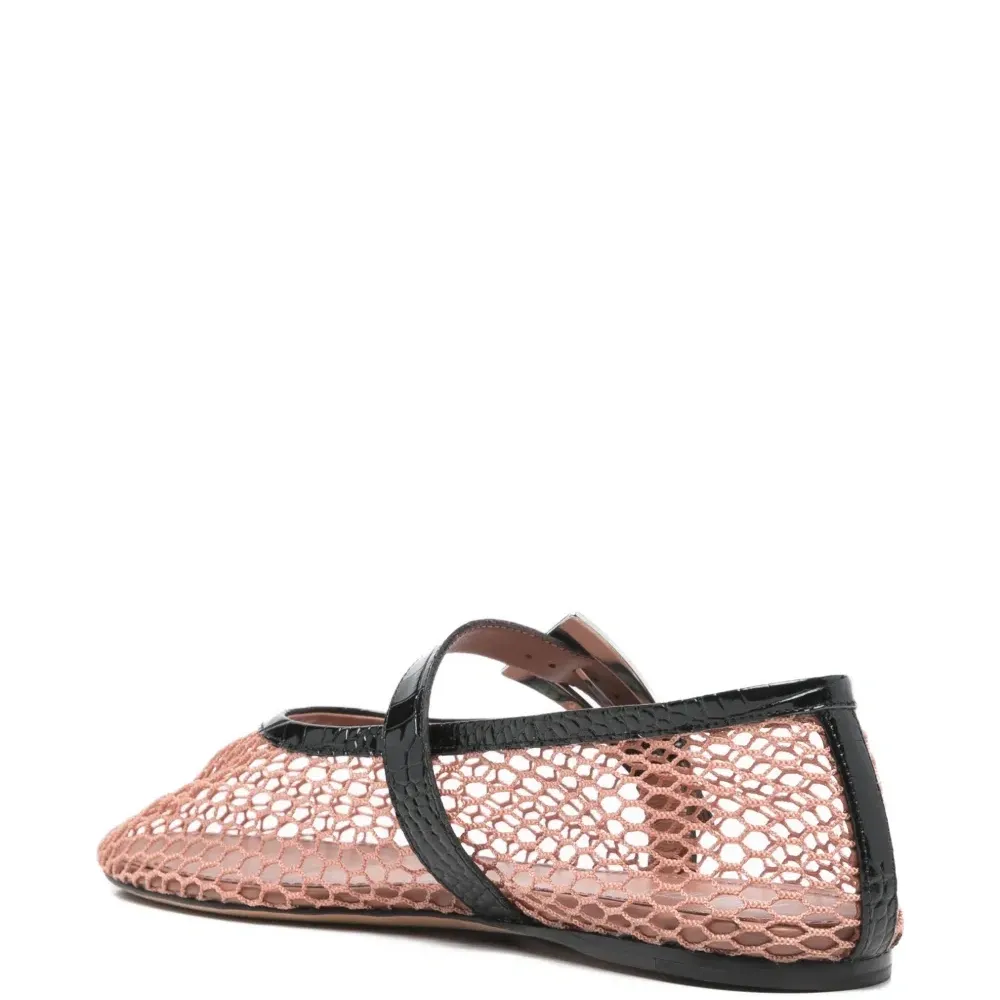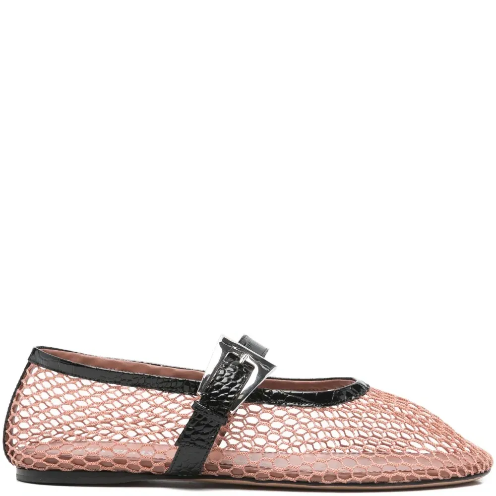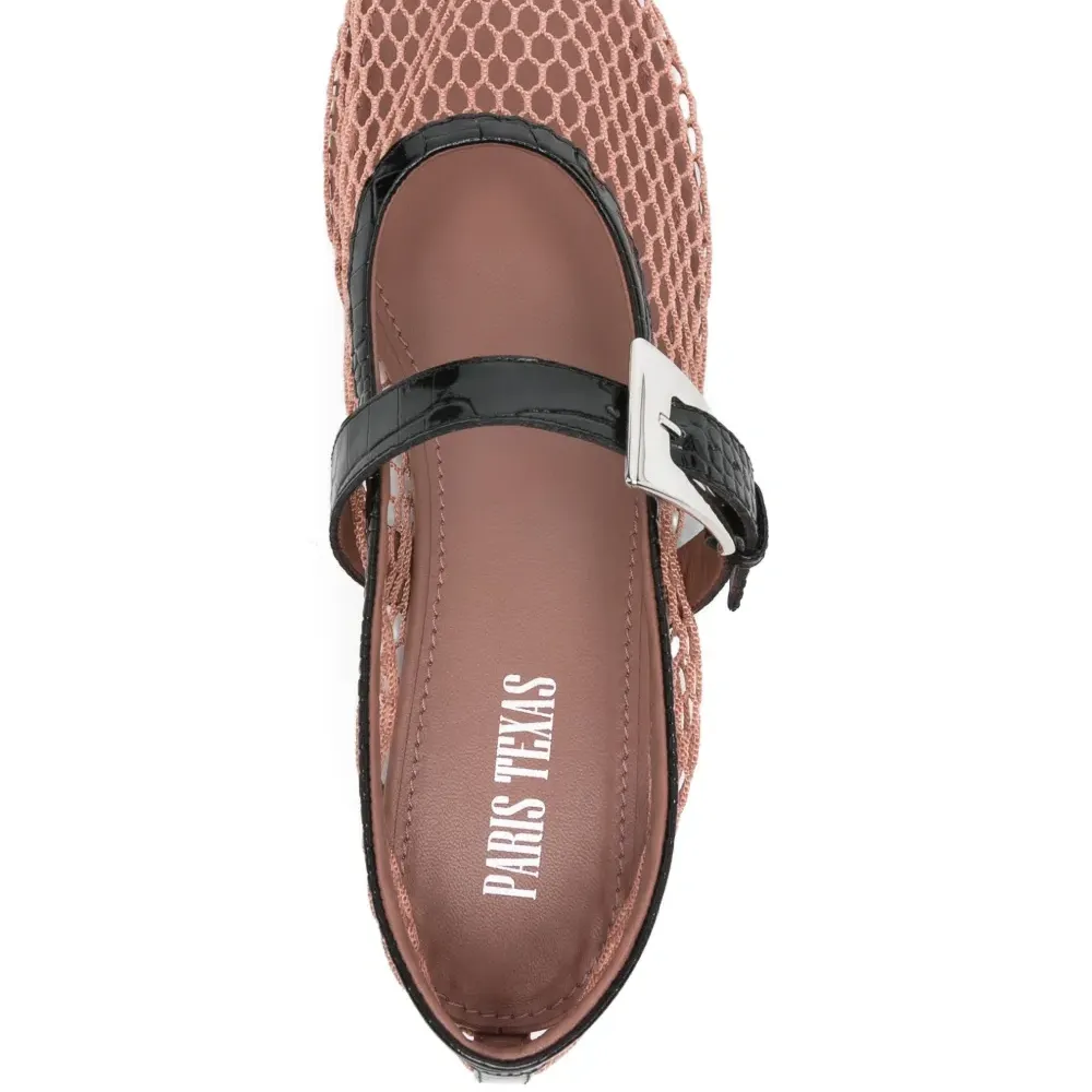 розовый и черный, застежка на пряжке, круглый носок, сетчатый дизайн