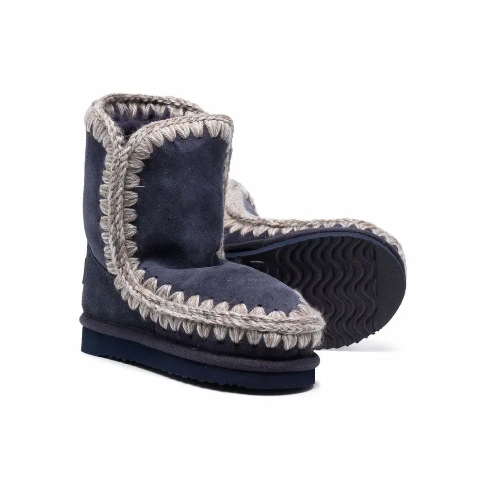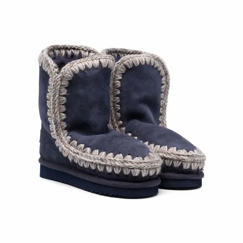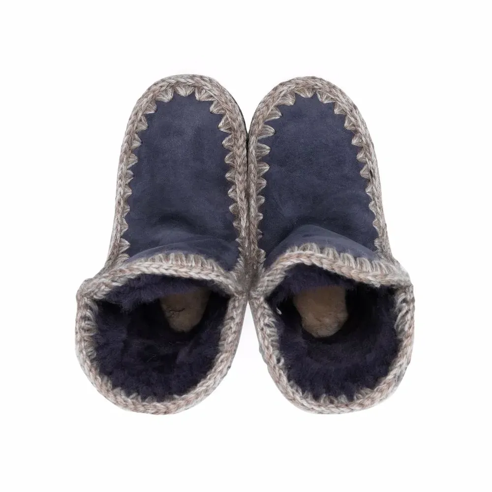 синий шерсть контрастная строчка закругленный носок модель без застежки высота по щиколотку плоская подошва подкладка из овечьей шерсти