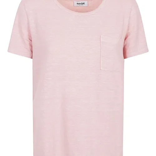 светло-розовый круглый вырез короткие рукава накладной карман прямой подол
