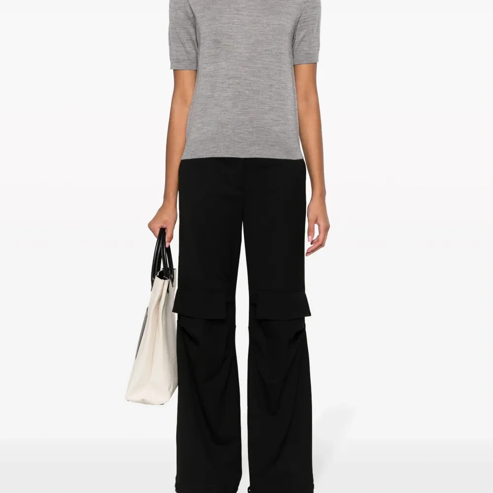 Wool flared cargo trousers