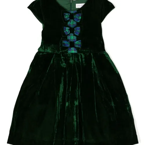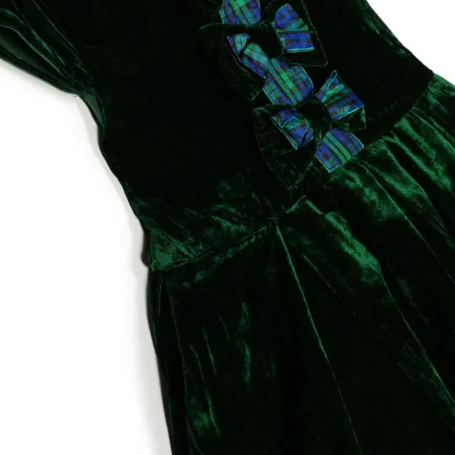 Расклешенное бархатное платье с бантом