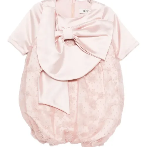 Комбинезон с бантом и кружевной отделкой
