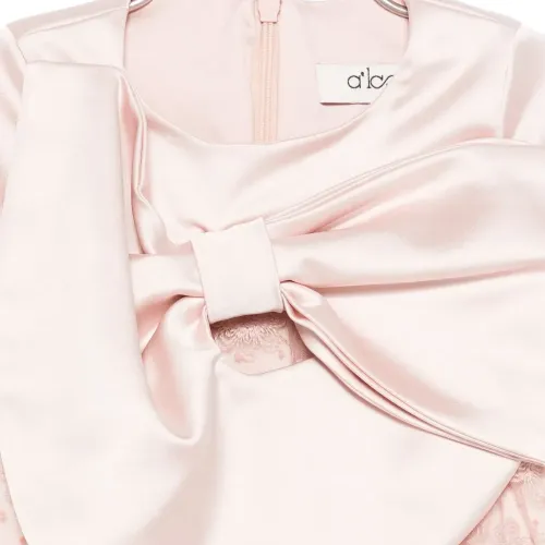 роза детали в виде банта кружевные вставки короткие рукава круглый вырез застежка-молния сзади