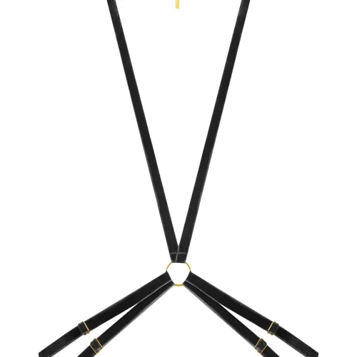 черные бархатные текстурированные регулируемые бретели с кольцом, фурнитура золотистого оттенка