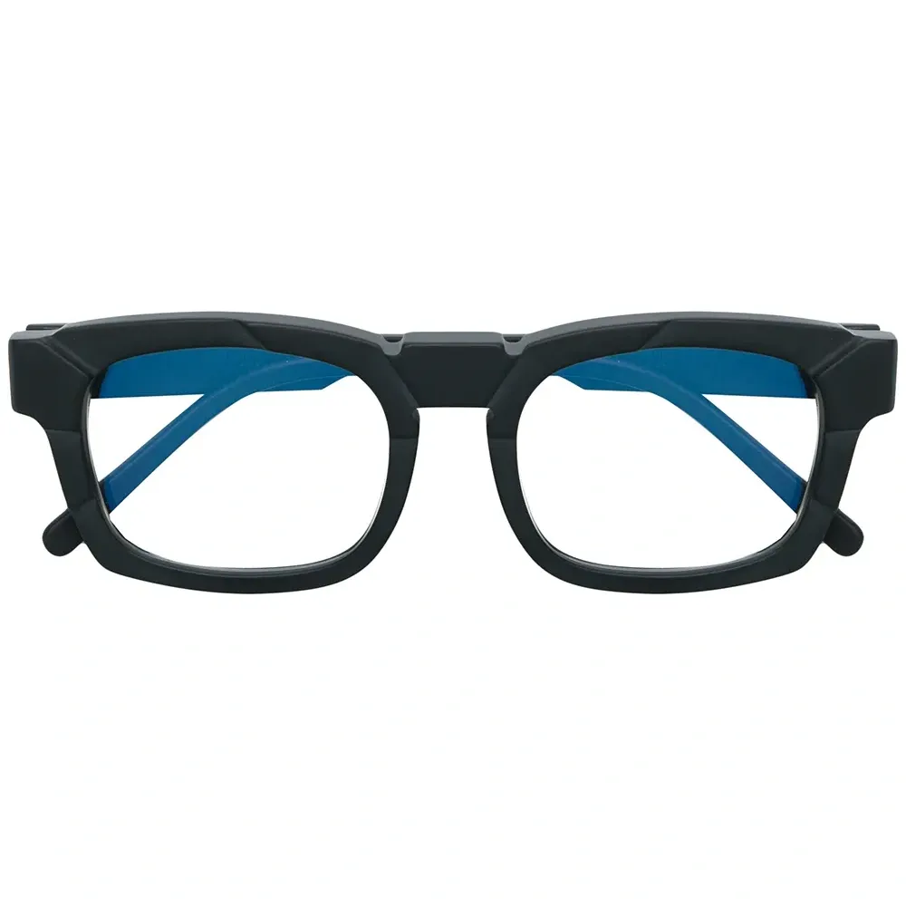 Очки 'K18' от Kuboraum. Квадратная оправа и прямые дужки с остро изогнутыми концами. Цвет: черный. Модель в стиле унисекс..