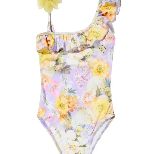 Купальник с оборками и цветочным принтом