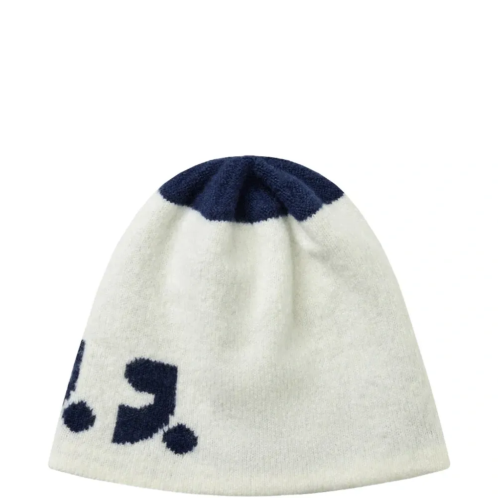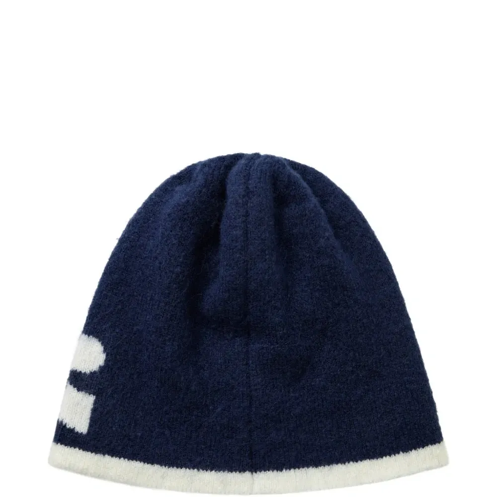 тёмно-синий и белый вязаный, двусторонний дизайн, контрастная отделка, надпись