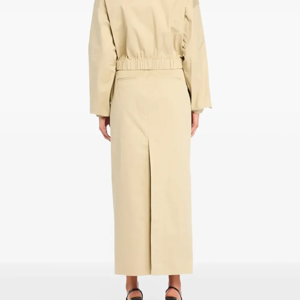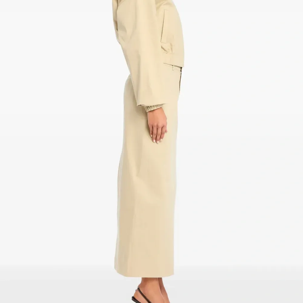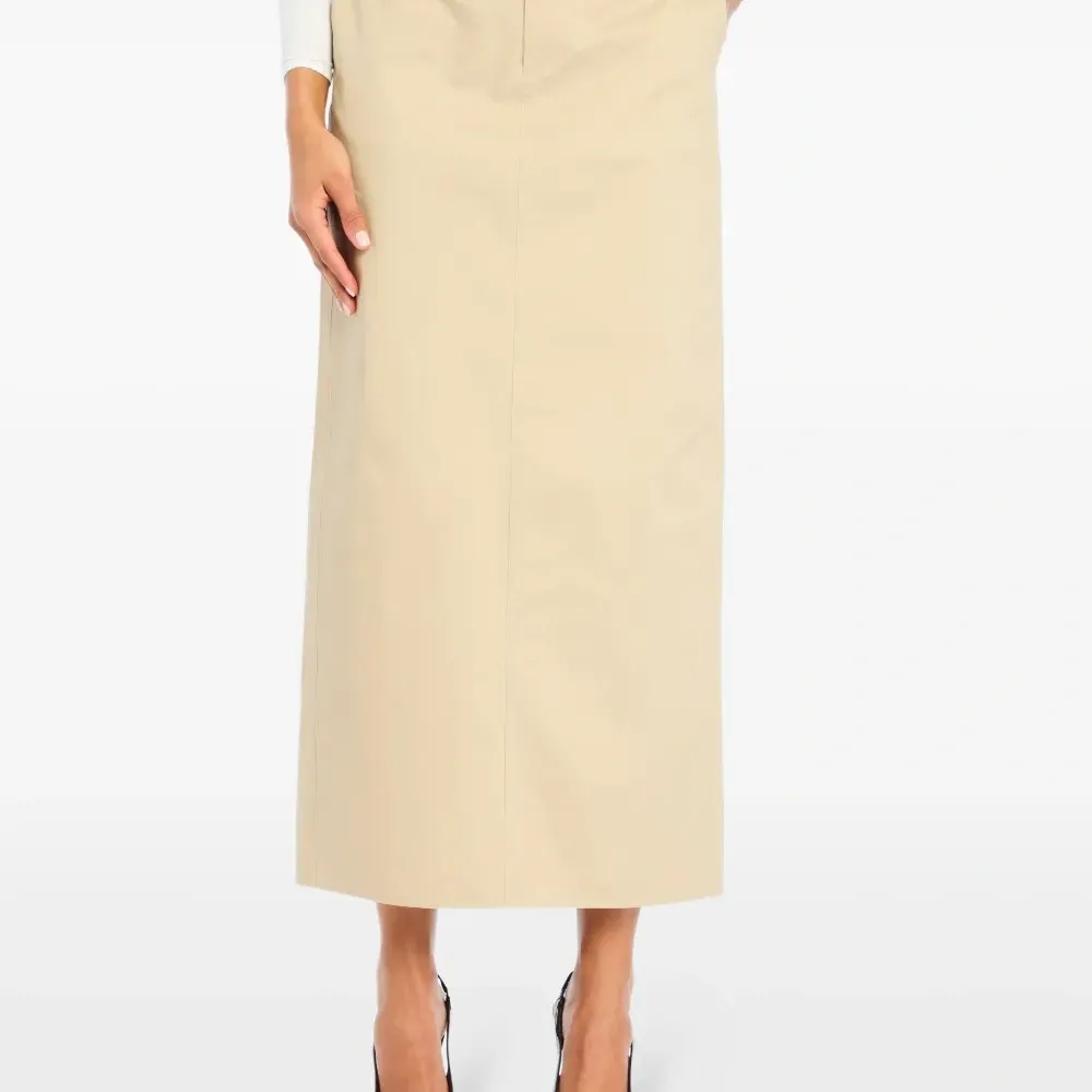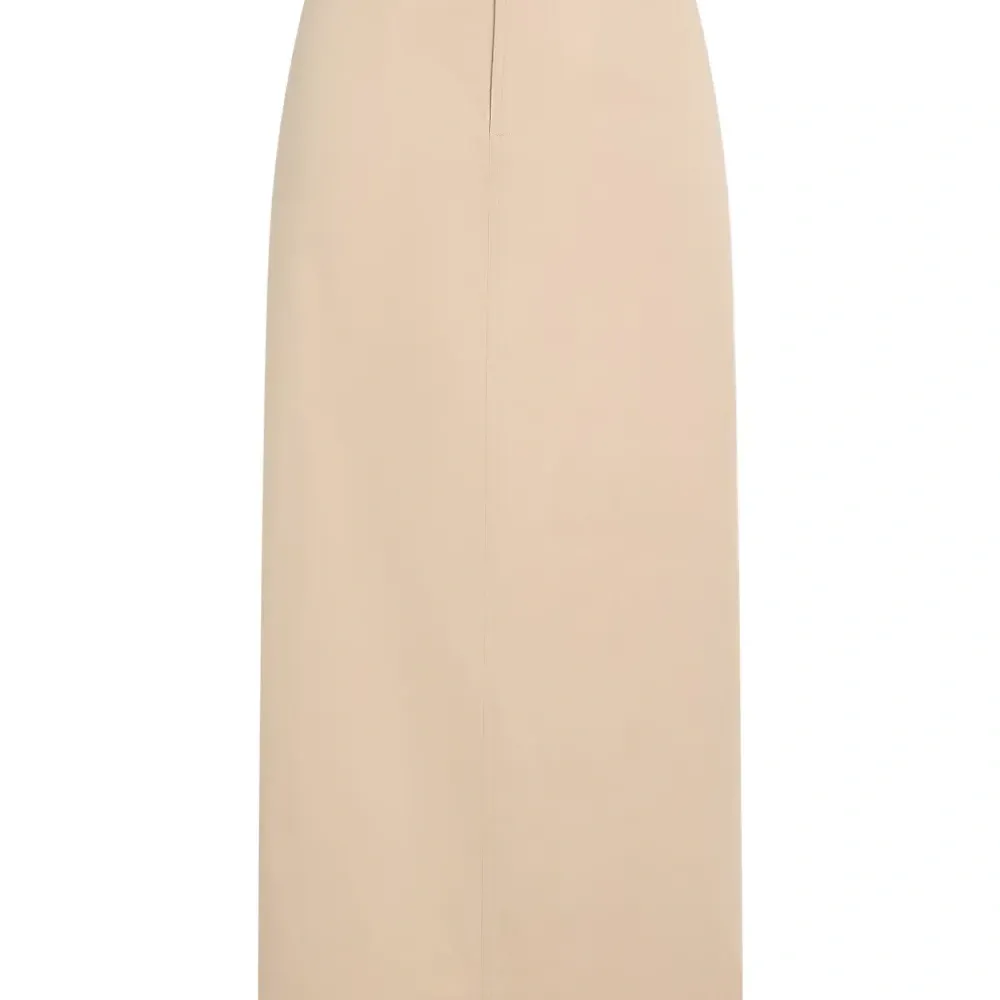 песочного цвета, прямой крой, высокая талия, шлица сзади, боковые карманы