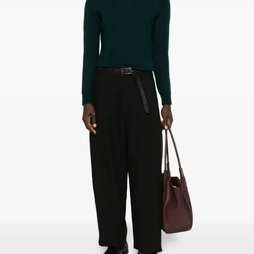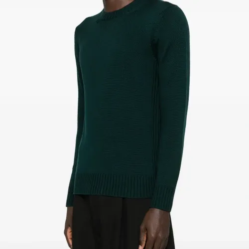 зелёный джемпер с круглым вырезом, вязаная фактура, длинные рукава, ребристые края