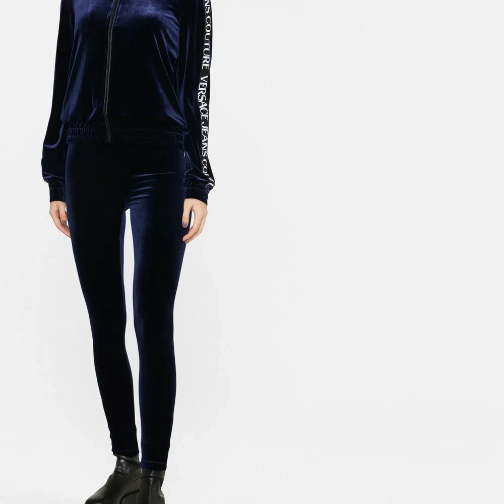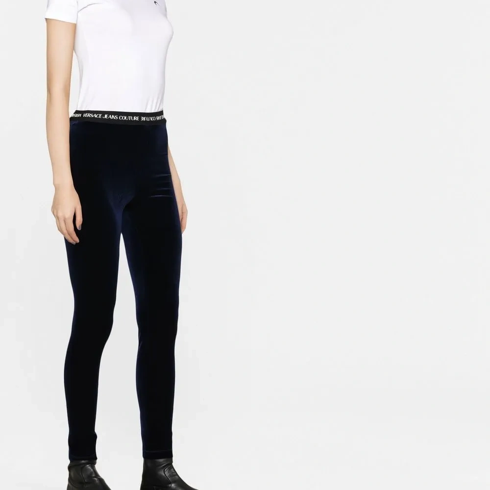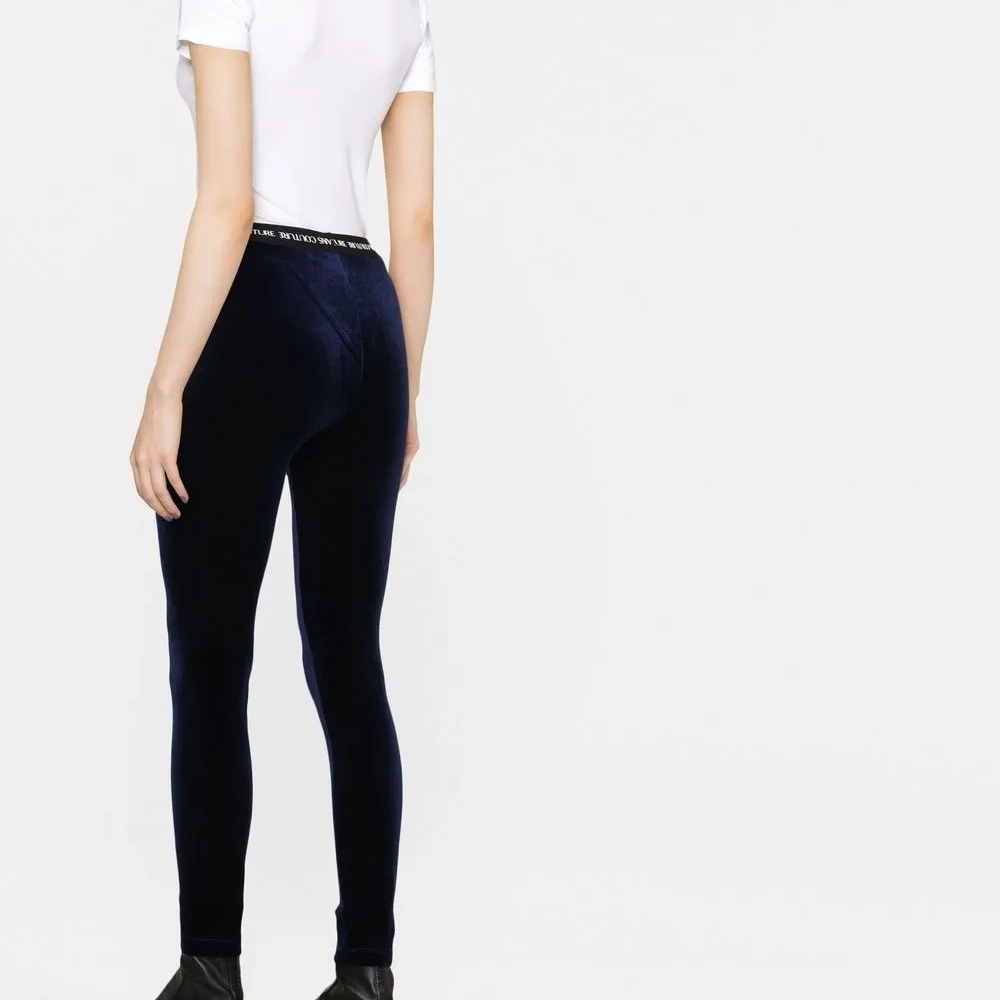 Бархатные легинсы с логотипом на поясе