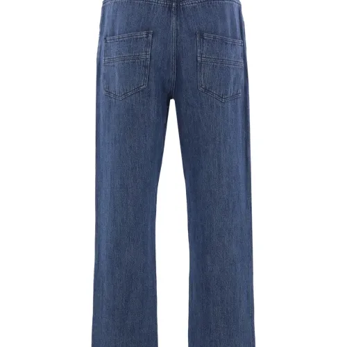 голубые брюки из смеси хлопка и льна с пятью карманами и застежкой на пуговицы