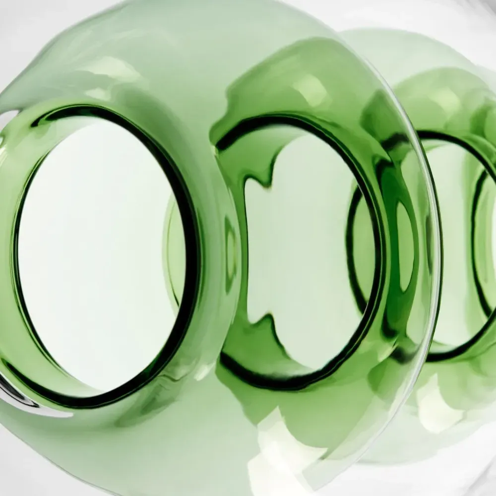 Светло-зеленый, стекло, сочетание двух оттенков, глянцевый эффект и дужки с закругленными концами.