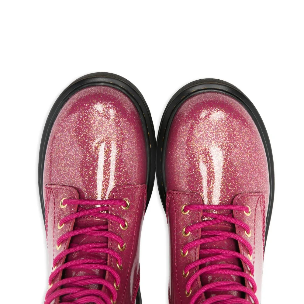 розовая отделка с блёстками, шнуровка, петля для натягивания, боковая застёжка-молния