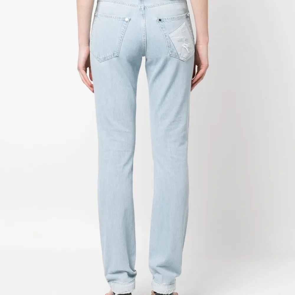Голубой, органический хлопок, обработанный деним, нашивка с логотипом сзади, модель с прорезями, вставки в технике пэчворк, заклепки, прямой крой, петли для ремня, застежка на молнии и пуговице спереди и пять карманов. Узнать больше о том, какие товары получают отметку «Ответственный выбор», можно здесь.
