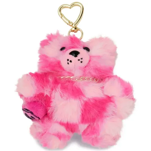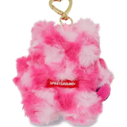 розовый и белый медвежонок в клетку, фурнитура золотистого оттенка, сердцевидная деталь, карабин