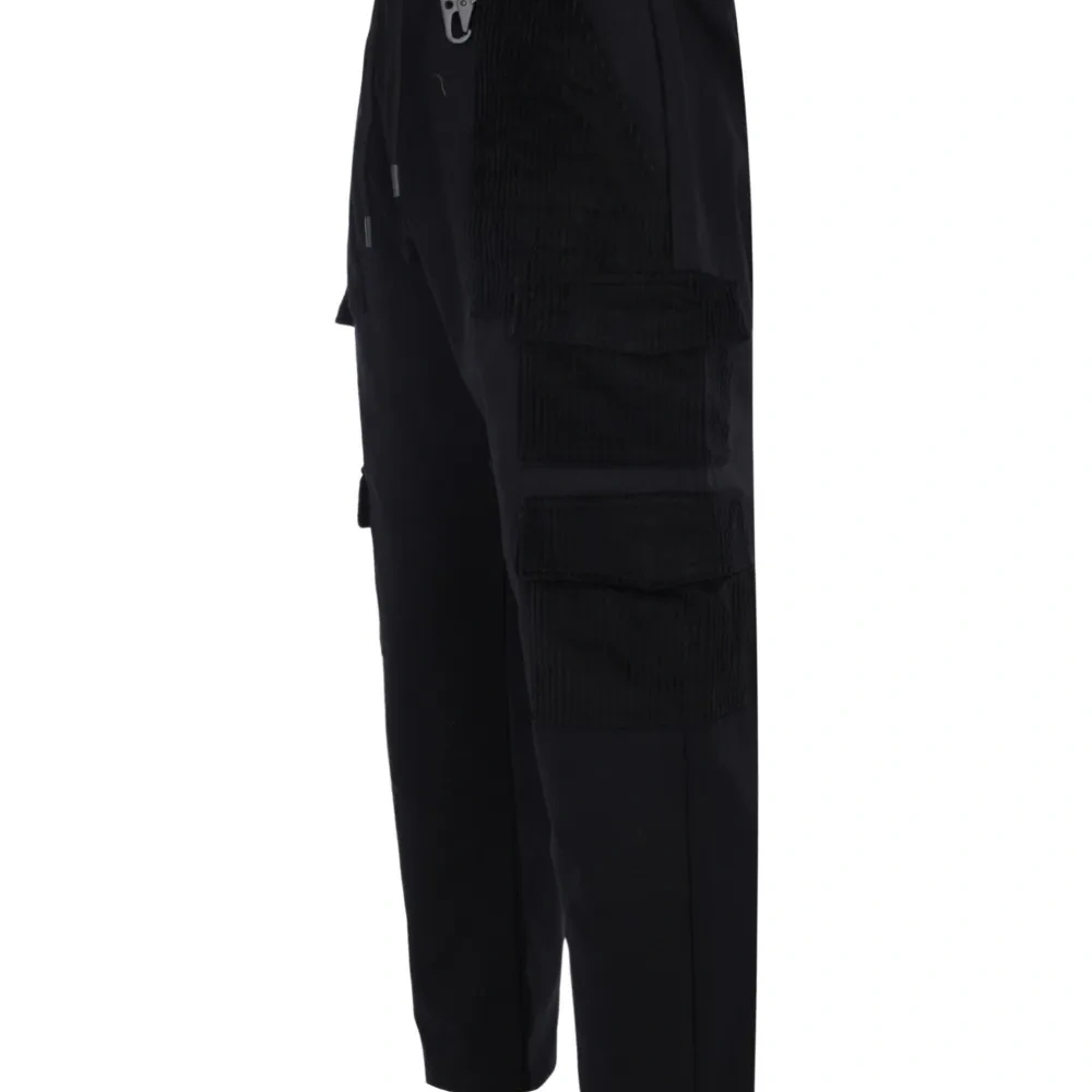 черные вельветовые вставки, множество карманов, застежка на шнурок, эластичный пояс, пуговичная отделка