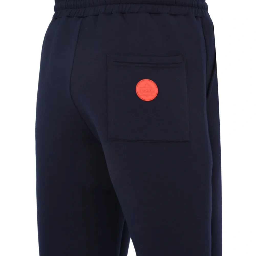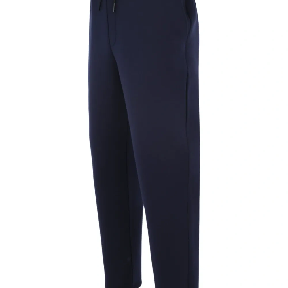 темно-синий цвет, застежка на кулиску, накладной карман сзади, круглая нашивка с логотипом, эластичный пояс, детали с пуговицами