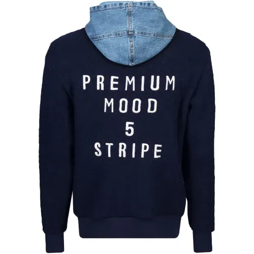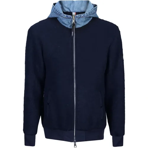синий джинсовый худи на молнии, длинные рукава, эластичный низ
